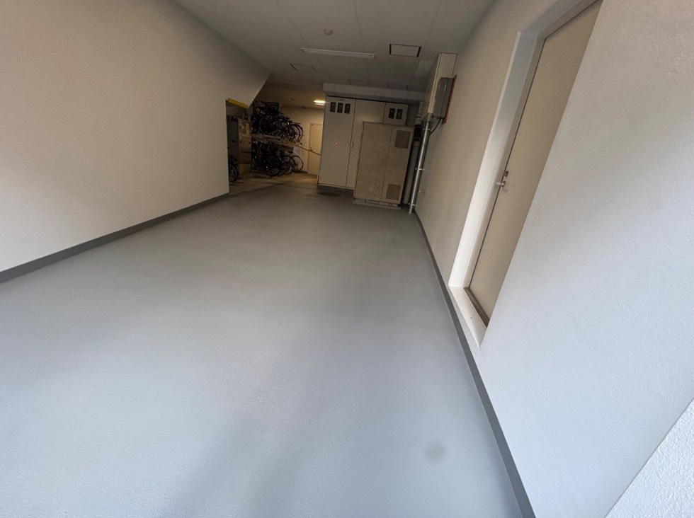 車両整備工場の床面を、耐油・耐衝撃性に優れた樹脂舗装で仕上げました。ただ塗るだけでなく、既存のコンクリートを機械で研磨し、最適な下地を作ることで剥がれにくい床を実現します。 AIMでは、床の施工と併せて外壁の塗り替え(塗装)や、雨漏りを防ぐ防水対策といった建物の総合メンテナンスも承っております。元請けとして、現場ごとに「自分で考え、最善を尽くす」プロ集団が、建物の寿命を延ばすお手伝いをいたします。